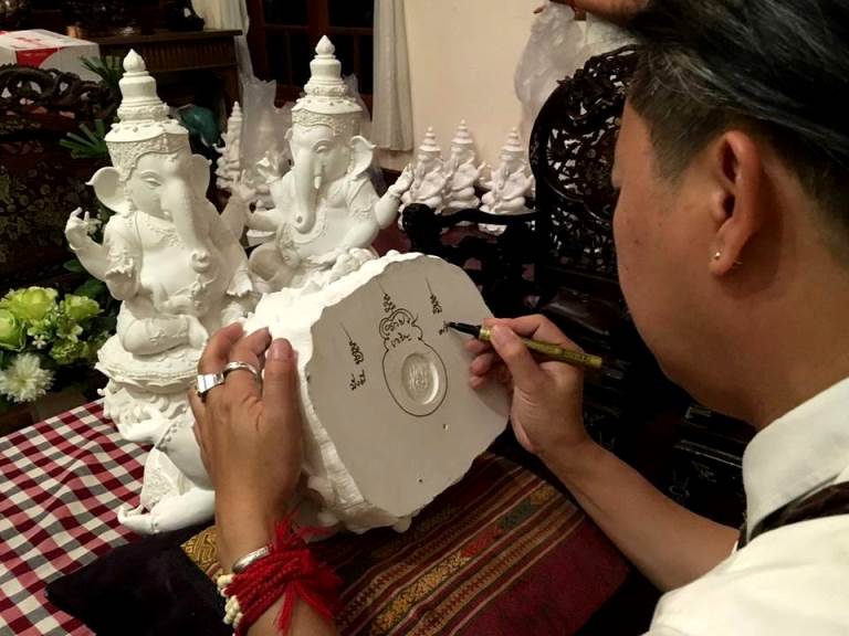 ขออนุญาติท่านอาจารย์สุวัฒน์ "แบ่งปันสิทธิ์"พระพิฆเนศเนื้อหินอ่อนเทียมสีขาวนวล และทำสีเหลือบทอง