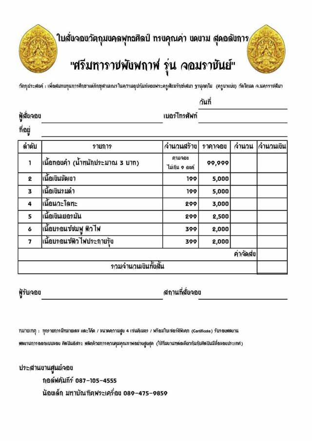 ค่าส่ง 100 บาท **รายการอื่นโทรถาม**