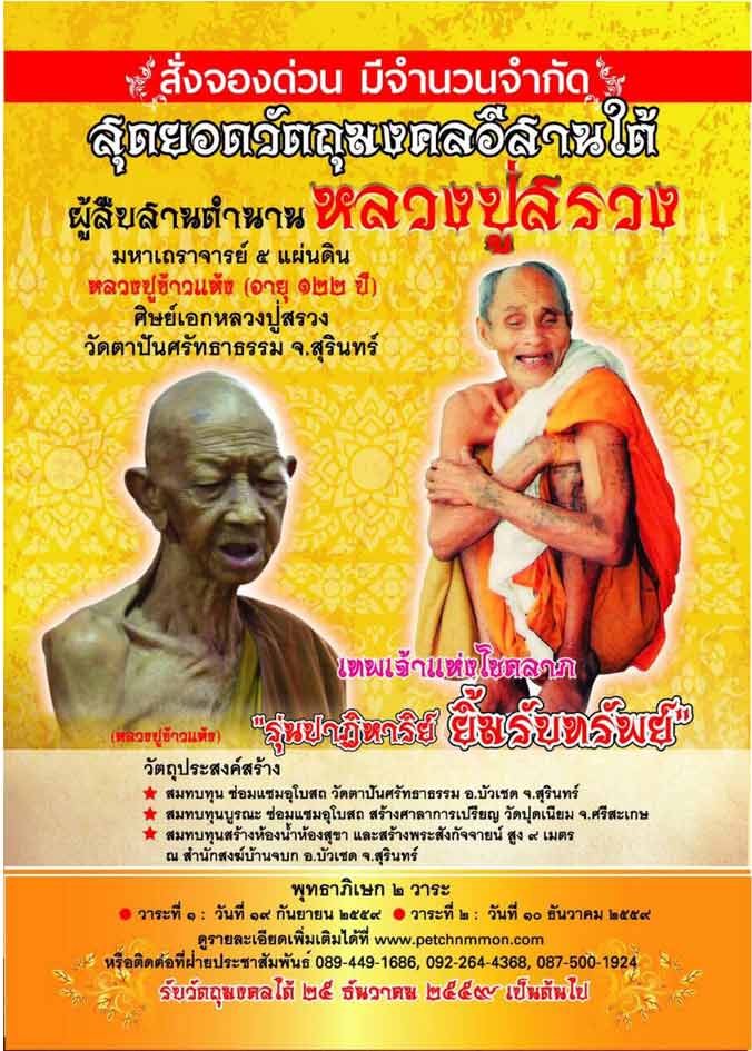 [[[เปิดจอง]]]หลวงปู่ข้าวแห้ง อายุ ๑๒๒ปี รุ่น"ปาฏิหาร์ย นิ้มรัยทรัพย์" วัดตาปันศรัทธาธรรม จังหวัดสุรินทร์...ศิษย์เอก หลวงปู่สรวง
