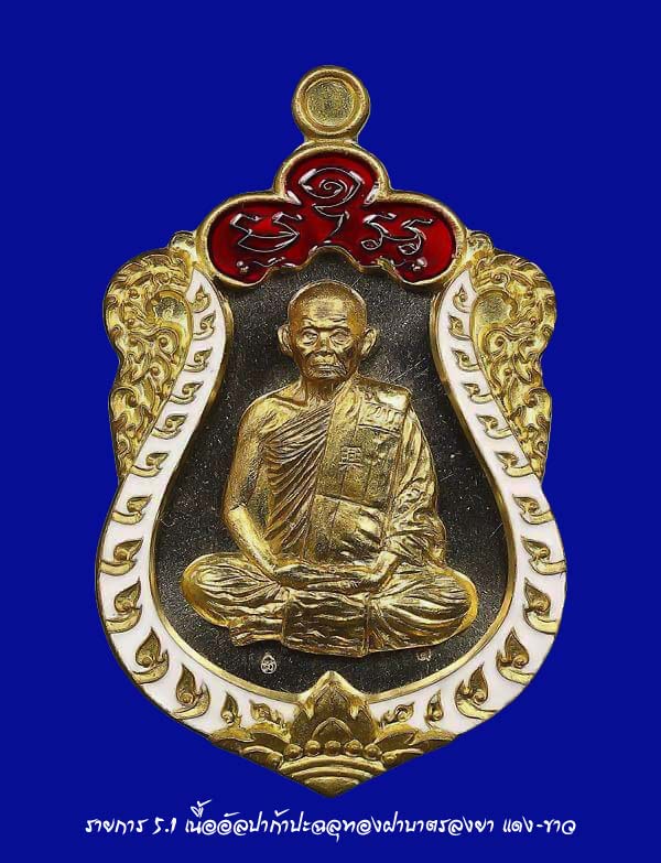 5.1 เนื้ออัลปาก้าปะฉลุหน้ากากทองฝาบาตร ขอบทองฝาบาตร ลงยา 3 สี (แดง-ขาว) ยอด 1 เหรียญๆละ 1,600 บาท