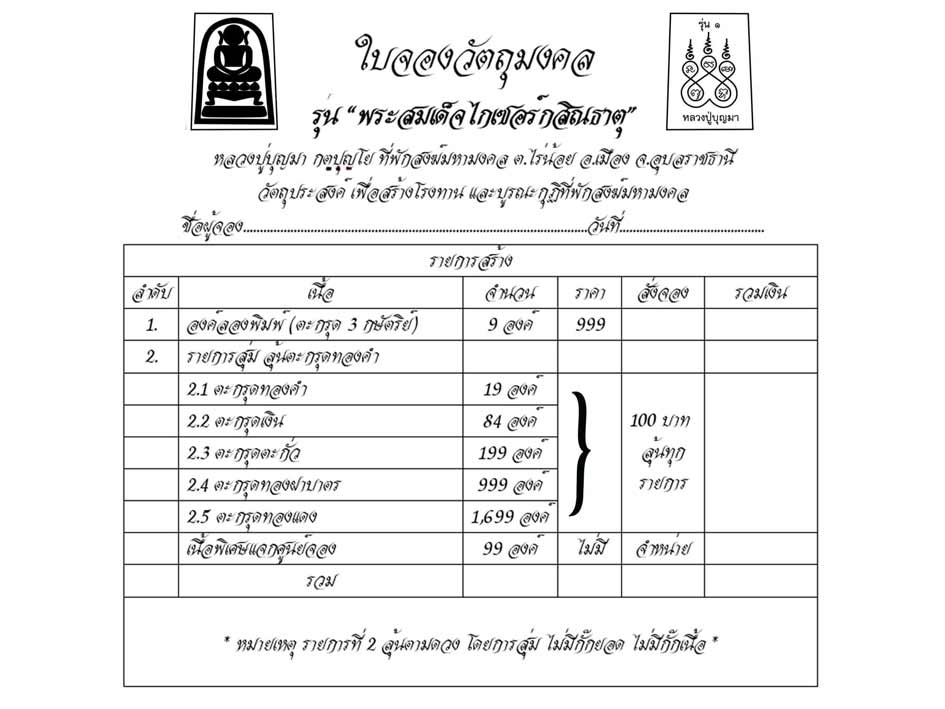 วัตถุประสงค์:สร้างโรงทานและบูรณะกุฏิพักสงฆ์