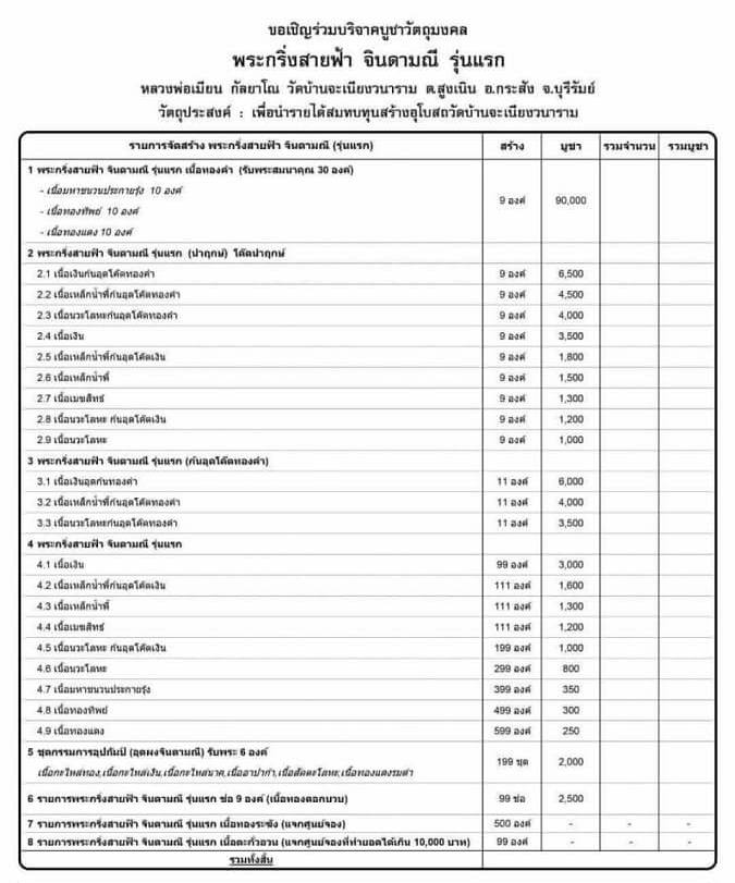 รายการ 6. รายการพระกริ่งสายฟ้า จินดามณี รุ่นแรก ช่อ 9 องค์ (เนื้อทองดอกบวบ) ราคาจอง ..2,500.-บาท มียอด = 1