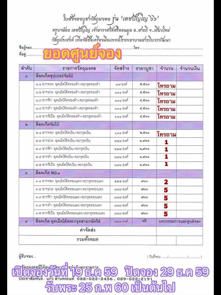 [[[เปิดจอง]]]ล๊อกเก๊ต รุ่น"เตชปัญโญ๖๖" ครูบาน้อย วัดศรีดอนมูล จังหวัดเชียงใหม่