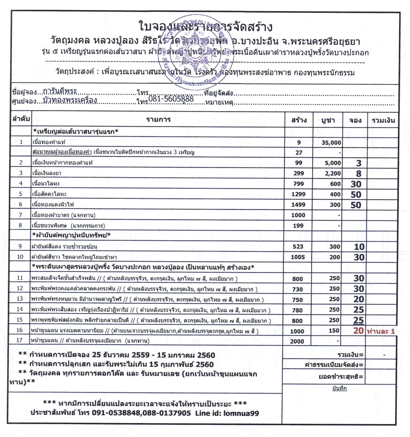 ยกเว้น รายการที่ 16 ขออนุญาตจัดแบบแบ่งๆกันนะครับ 1 ท่านมีสิทธิ์จอง 1 องค์