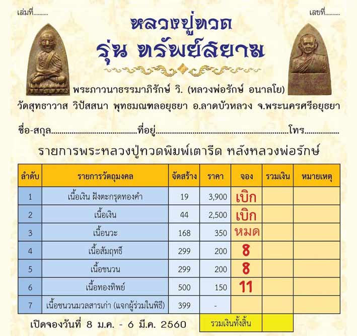 [[[เปิดจอง]]]หลวงปู่ทวดพิมพ์เตารีด หลังหลวงพ่อรักษ์ "รุ่น ทรัพย์สยาม" 2560 พระภาวนาธรรมาภิรักษ์ ( หลวงพ่อท่านเจ้าคุณรักษ์ อนาลโย )วัดสุทธาวาส วิปัสสนา พุทธมณฑลอยุธยา อ.ลาดบัวหลวง จ.พระนครศรีอยุธยา