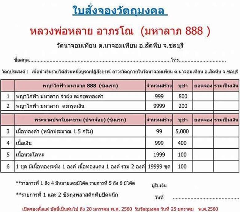 *** เปิดจองพญาไก่ฟ้า มหาลาภ & พระนาคปรกใบมะขาม(ปรกจ้อย) รุ่นแรก หลวงพ่อหลาย อาภรโณ วัดนาจอมเทียน อ.สัตหีบ จ.ชลบุรี