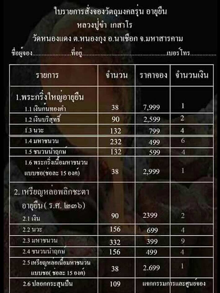 [[[เปิดจอง]]]วัตถุมงคลรุ่น"อายุยืน" หลวงปู่ขำ เกสาโร วัดหนองแดง จังหวัดมหาสารคาม