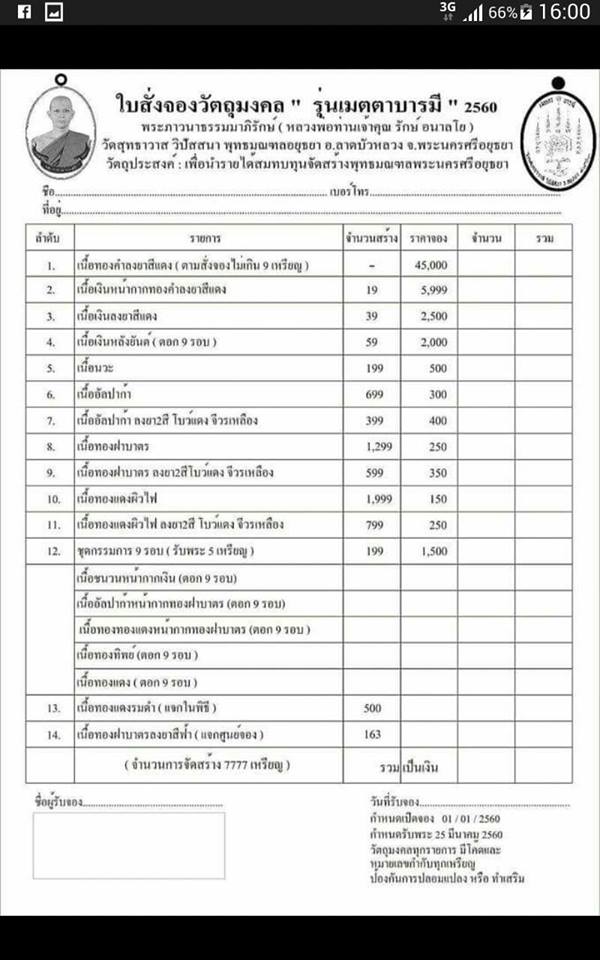 วัตถุประสงค์ : เพื่อนำเงินรายได้สมทบทุนสร้างพุทธมณฑลพระนครศรีอยุธยา