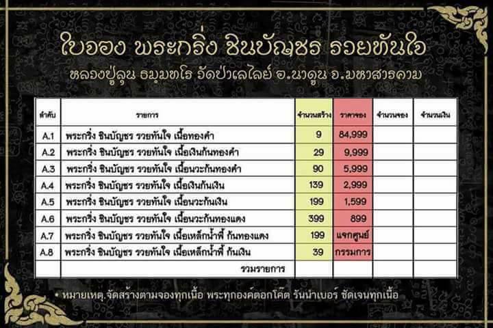 พระกริ่งชินบัญชร หลวงปู่ลุน ธัมมธโร วัดป่าเรไลย์ อ.นาดูน จ.มหาสารคาม