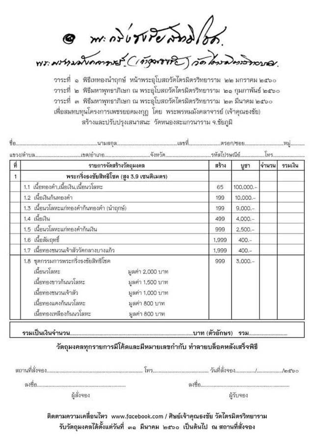 1.8 ชุดกรรมการพระกริ่งธงชัยสิทธิโชค มี 3 ชุดๆละ 3,000 บาท