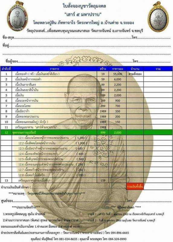เปิดจองเหรียญ เสาร์๕ มหาปราบ หลวงพ่อสิน วัดละหารใหญ่