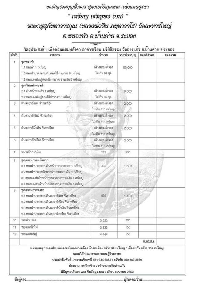เปิดจอง เหรียญเจริญพรบน หลวงพ่อสิน ราคาวัดครับ