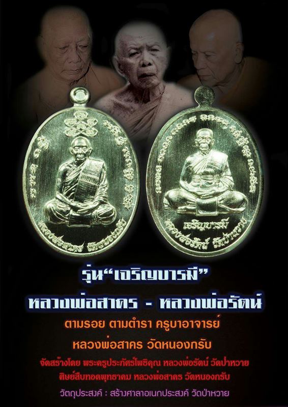 เหรียญเจริญบารมี หลวงพ่อสาคร-หลวงพ่อรัตน์ วัดป่าหวาย เสกโดยหลวงพ่อรัตน์ วัดป่าหวาย จ.ระยอง