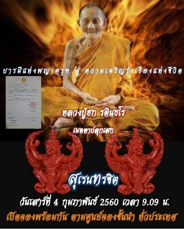 พญาครุฑ มหาโภคทรัพย์ รุ่นแรก รุ่น สุเรนทรชิต หลวงปู่ฮก รตินฺธโร วัดราษฏร์เรื่องสุข (มาบลำบิด) จ.ชลบุรี เมตตาปลุกเสก