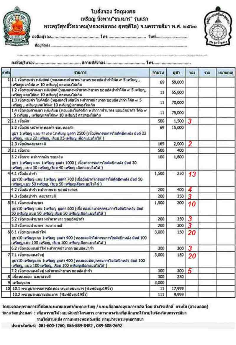 5.1 เนื้อทองฝาบาตร สร้าง 1,500 เหรียญๆละ 200 -*มียอด 13 เหรียญ*