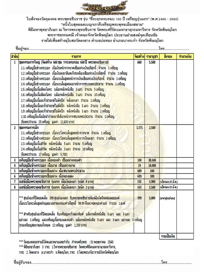 [[[เปิดจอง]]]พระพุทธชินราช ๑๐๐ ปี(2460-2560) วัดพระศรีรัตนมหาธาตุวรมหาวิหาร จังหวัดพิษณุโลก