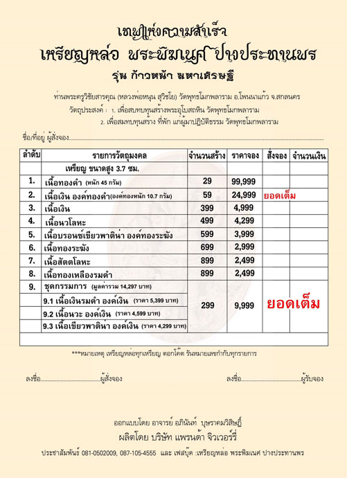 ท่านใดสนใจจองปิดในกระทู้ได้เลย