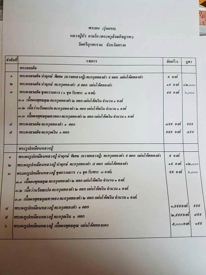 รายการ 4 มียอด 10 องค์ / องค์ล่ะ 1,500 บาท