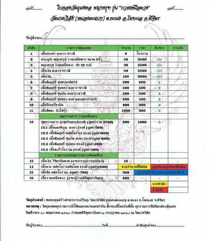 ยอดและรายการจัดสร้างตามบิลครับ ราคาวัดทุกรายการ