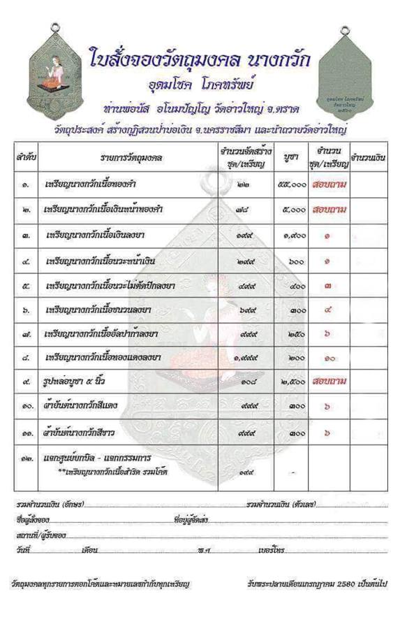 รายการ 10.ผ้ายันต์นางกวักสีแดง ราคาจอง 300.-บาท = 6