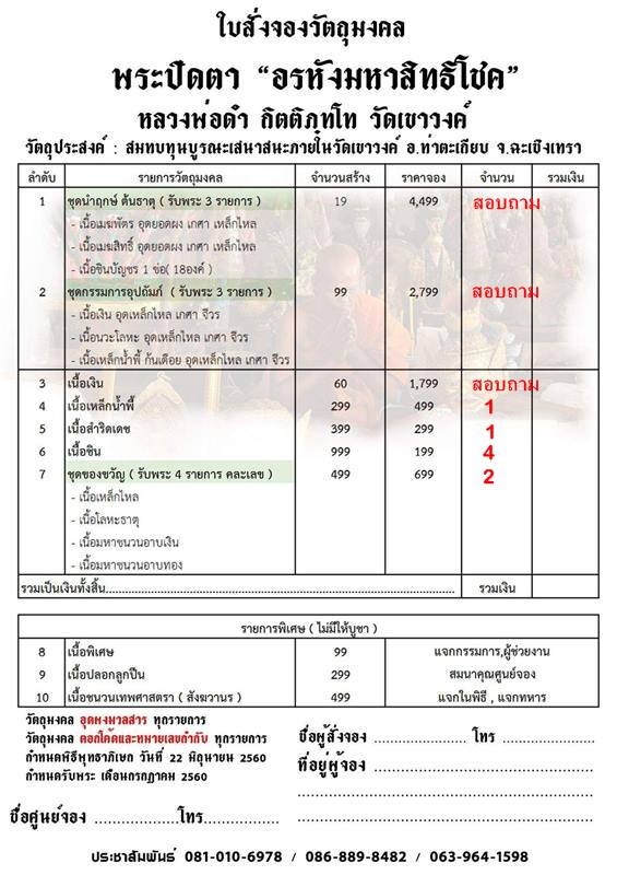 รับวัตถุมงคลเดือนกรกฎาคม 60