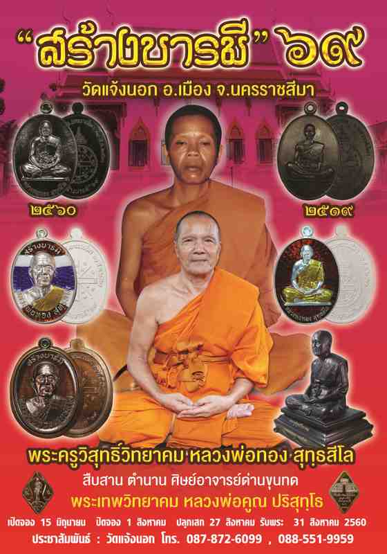 เปิดจองเหรียญหลวงพ่อทอง สุทฺธสีโล รุ่น สร้างบารมี ๖๙ วัดแจ้งนอก นครคราชสีมา