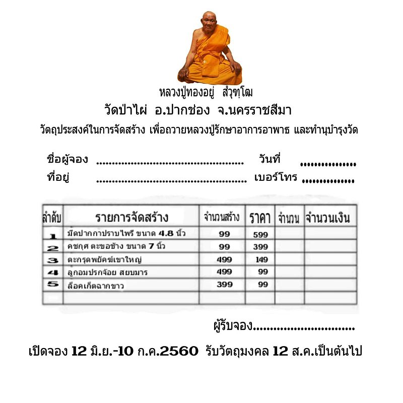** เปิดจอง// วัตถุมงคล หลวงปู่ทองอยู่ สฺวุฑฺโฒ วัดป่าไผ่ อ.บปากช่อง จ.นครราชสีมา