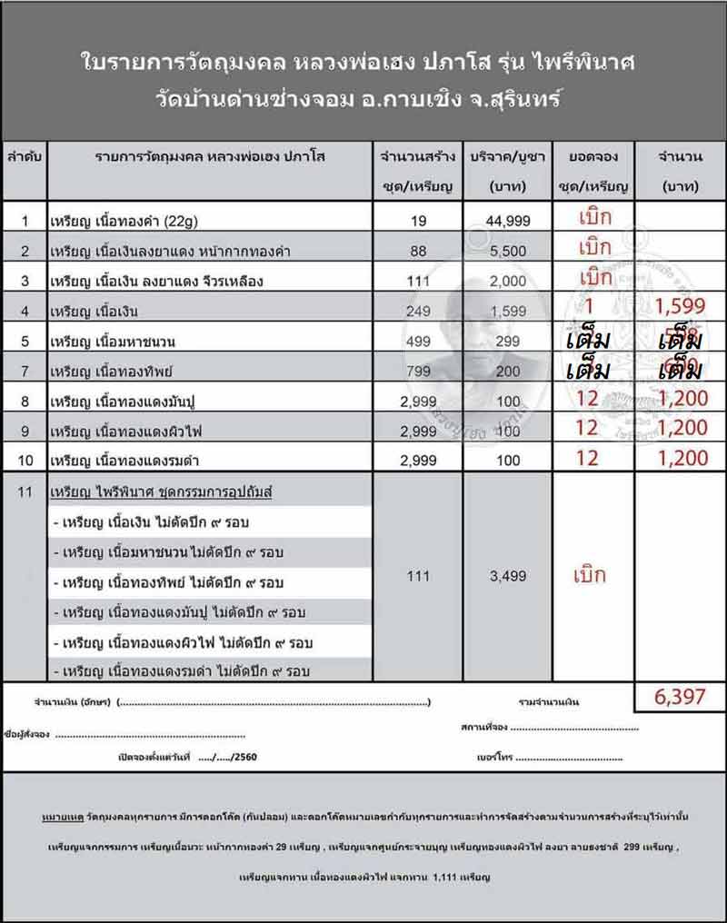 รายการ 3.เนื้อเงิน ลงยาแดง จีวรเหลือง 2000 สอบถาม
