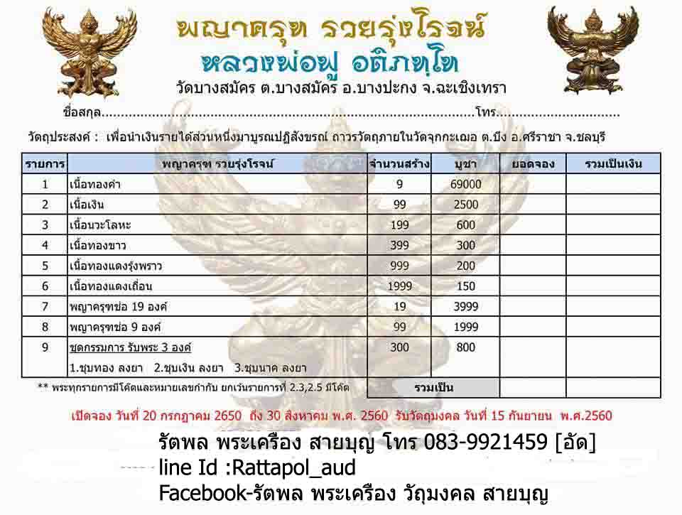 เปิดจอง พญาครุฑ รุ่นแรก หลวงพ่อฟู รุ่น รวยรุ่งโรจน์ หลวงพ่อฟู วัดบางสมัคร จ.ฉะเชิงเทรา
