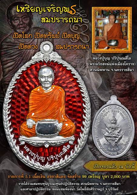 *** เปิดจอง// เหรียญเจริญพร สมปราถนา หลวงปู่บุญ ปริปฺนฺณสีโล สวนนิพาน จ.นครราชสีมา