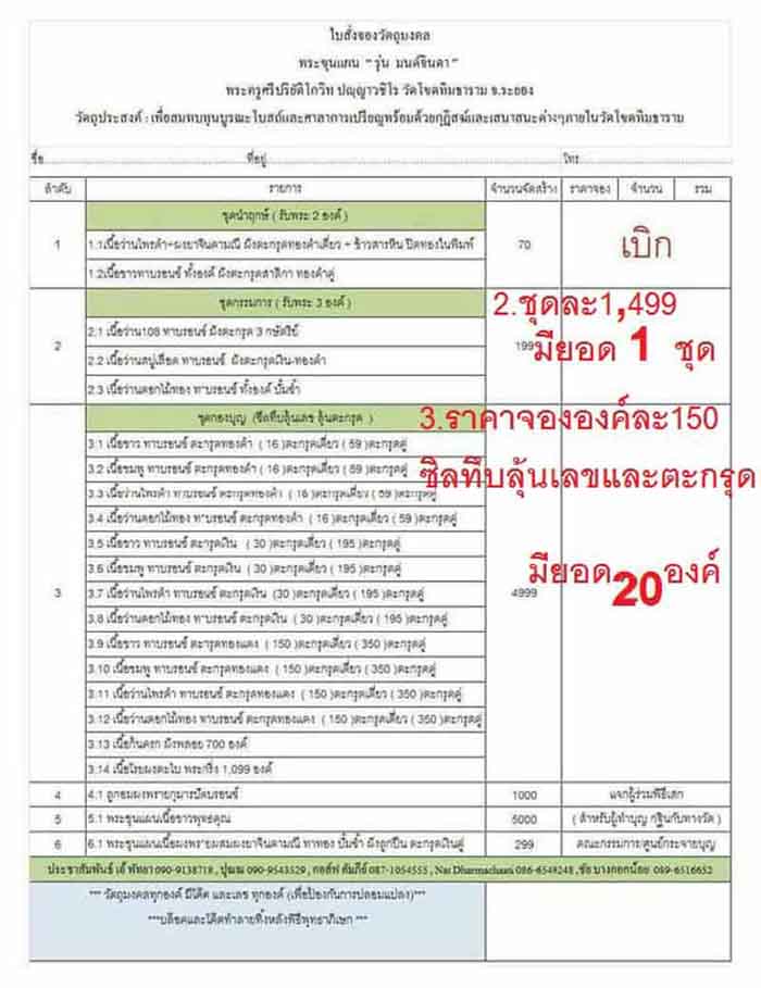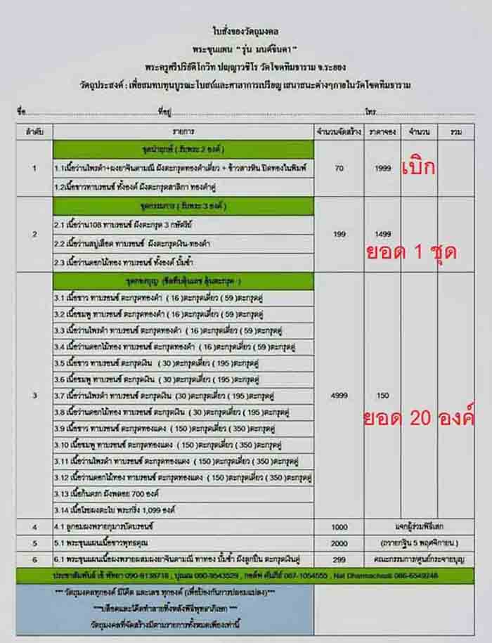 1.ชุดนำฤกษ์(รับพระ 2 องค์) ชุด 1,999(สอบถาม)