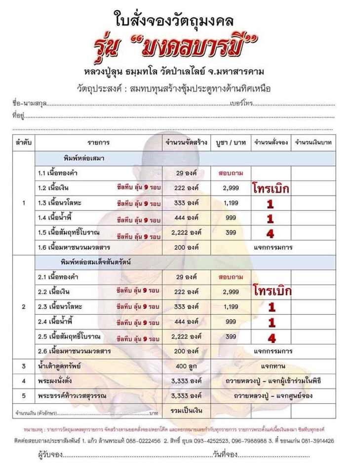 [[[เปิดจอง]]]เหรียญเสมา และสมเด็จหล่อ รุ่น"มงคลบารมี" หลวงปู่ลุน วัดป่าเลไลย์ จังหวัดมหาสารคาม