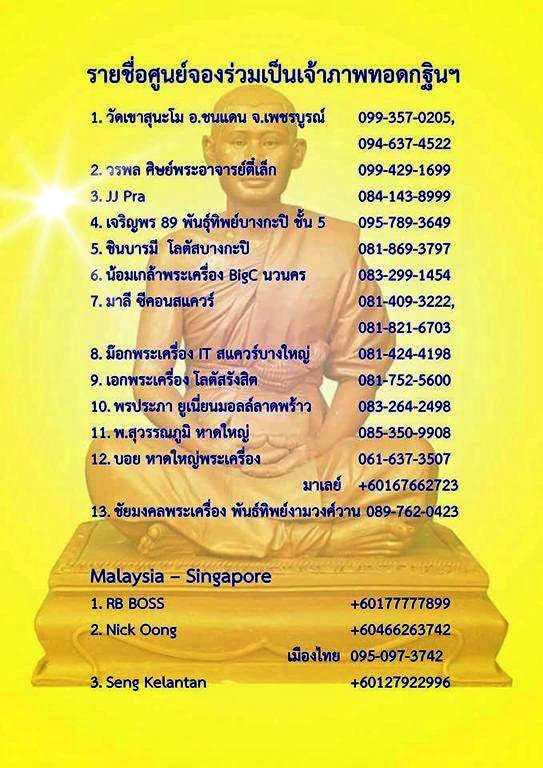 .ขอเชิญร่วม เป็นเจ้าภาพทอดกฐินสามัคคี ณ.วัดเขาสุนะโม อ.ชนแดน จ.เพชรบูรณ์ ประจำปี 2560 และการรับรูปหล่อพระอาจารย์ตี๋เล็ก (รุ่นแรก) เป็นที่ระลึก..สนใจติดต่อ jjpra ศูนย์จองที่ 3 เมล์บล๊อก 084-1438999 หรือ line id jjpra9501 บัญชีโอนเงิน 010-1-31191-0 ธ.กสิกรไทย จักรกฤษณ์ ทองทิพย์ สายตรงไม่ควรพลาด ... |