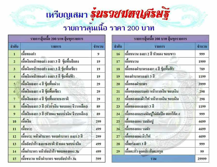 ลุ้นเนื้อ+ลุ้นเลข(ทุกรายการ1-29) ราคา 200 บาท มียอด 50 เหรียญ