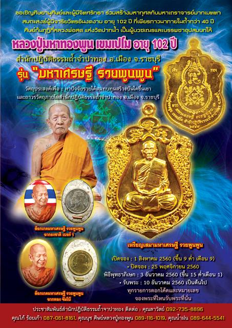*** เปิดจอง// เหรียญเสมา รุ่นมหาเศรษฐี รวยพูนพูน หลวงปู่ทองพูน เขมเปโม สำนักปฏิบัติธรรมถ้ำจำปาทอง อ.เมือง จ.ราชบุรี