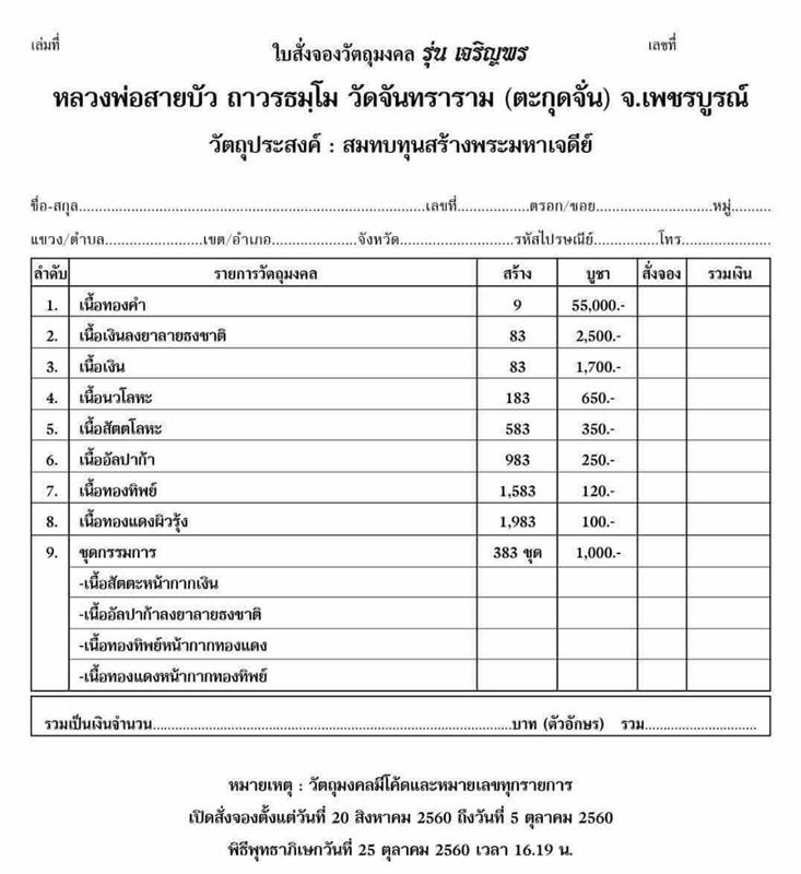 *** วัตถุประสงค์ เพื่อสมทบทุนสร้างพระมหาเจดีย์