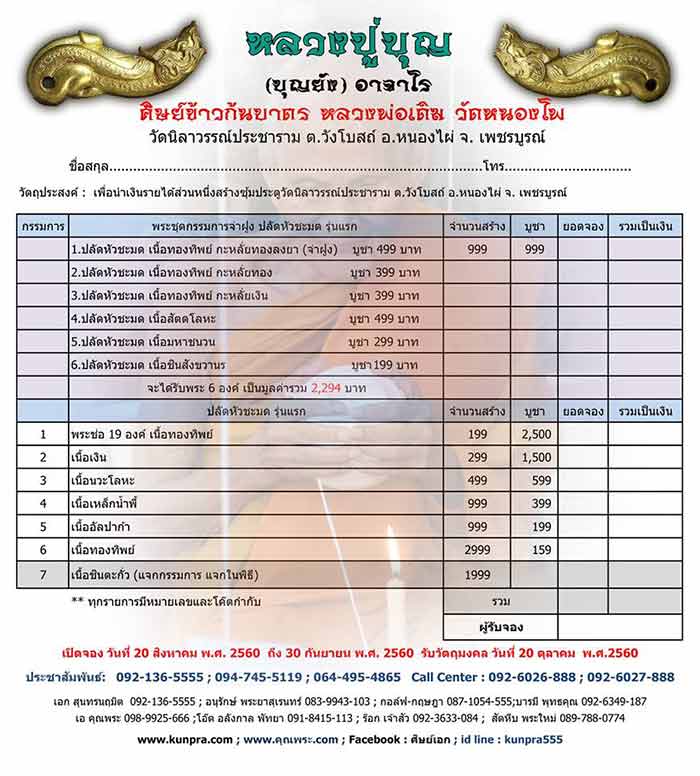 ชุดกรรมการรับพระ 6 องค์ ชุดละ 999