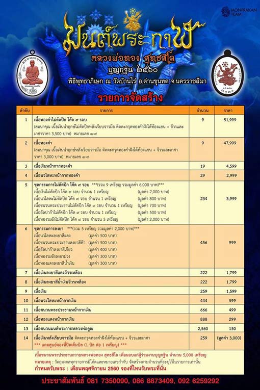 เปิดแบ่งยอดจองพ่อทอง รุ่นมนต์พระกาฬ