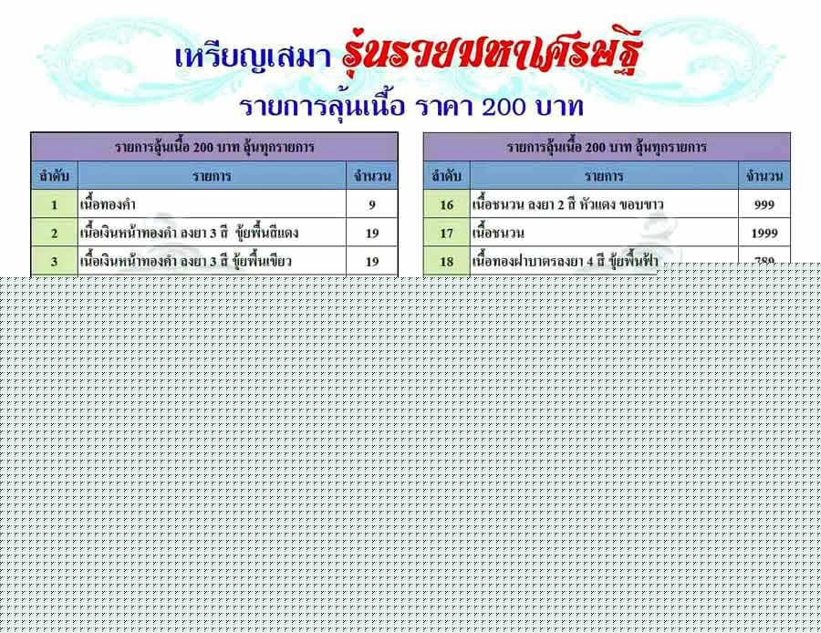 ลุ้นเนื้อ+ลุ้นเลข(ทุกรายการ1-29) ราคา 200 บาท มียอด 50 เหรียญ