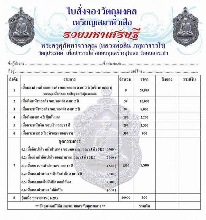 รายการที่ 7 ชุดกรรมการ รับพระ 6 เหรียญ มียอด 2 ชุด ........... ชุดละ 2,400 บาท