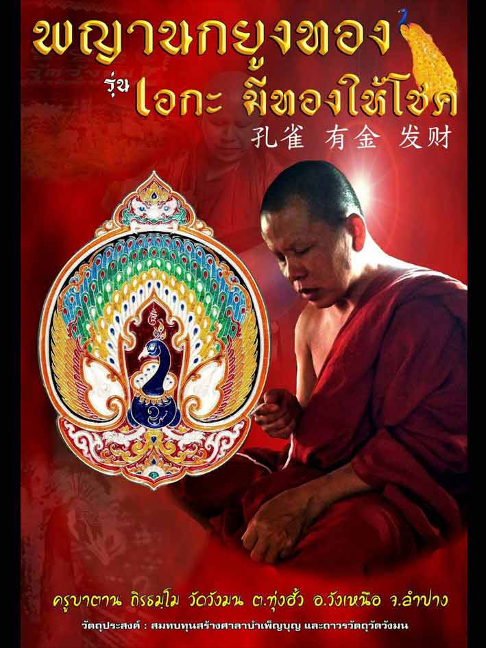 [[[เปิดจอง]]]พญานกยูงทอง รุ่น"เอกะ มีทองให้โชค" ครูบาตาน วัดวังมน จังหวัดลำปาง