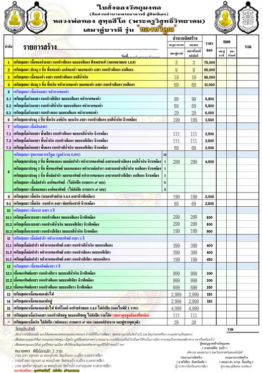 รายการ 12.2 เหรียญเนื้อทองทิพย์ลงยา กนกข้างสีแดง ขอบบนสีเขียว ราคาจองเหรียญละ 300.-บาท มียอด