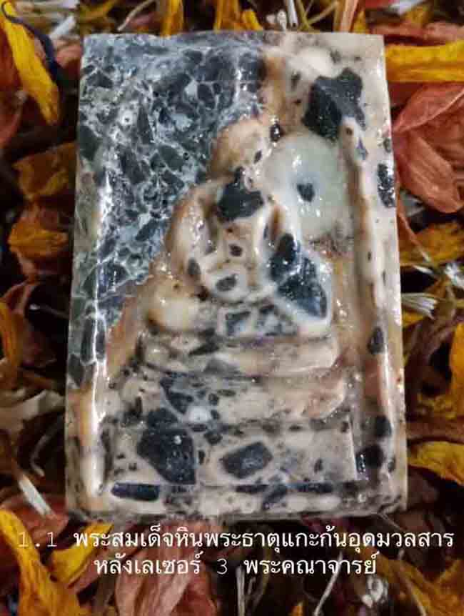 รายการที่ 1.1 พระสมเด็จหินพระธาตุแกะก้นอุดมวลสารหลังเลเซอร์ 3พระคณาจารย์มียอด 1องค์องค์ละ 1200บาท