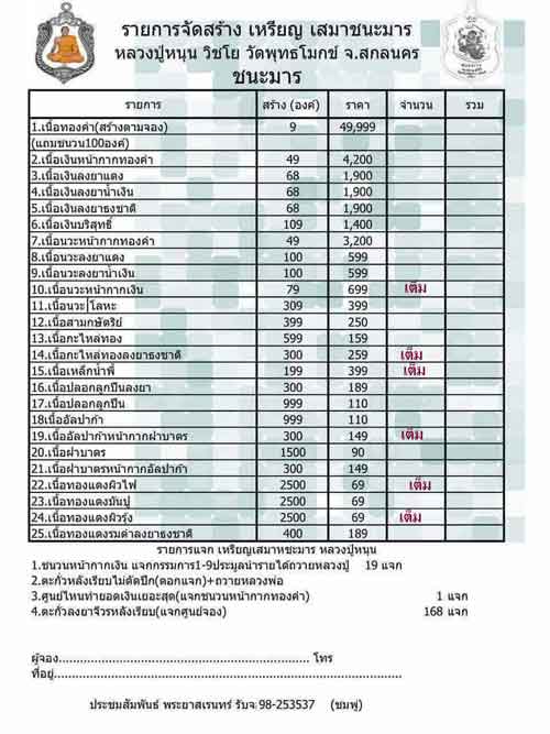 มียอดเกือบทุกรายการ ยกเว้น ที่มีข้อความว่า*** เต็ม***