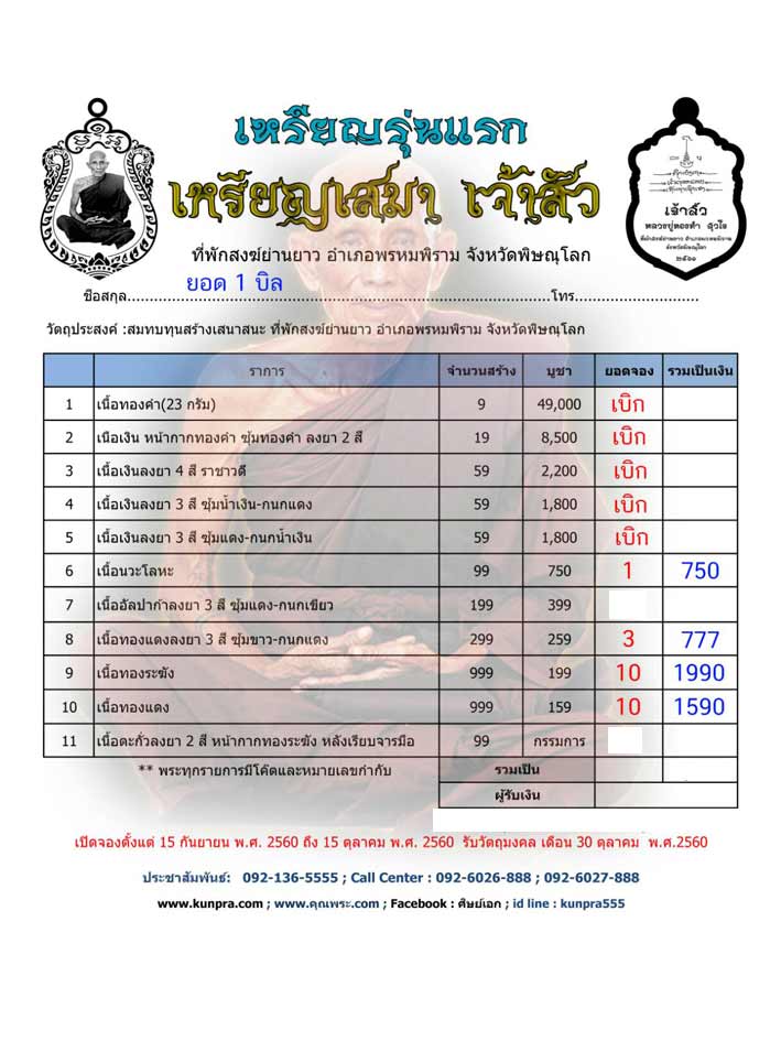 จัดสร้างรวมทุกเนื้อ เพียง 2,899 เหรียญ