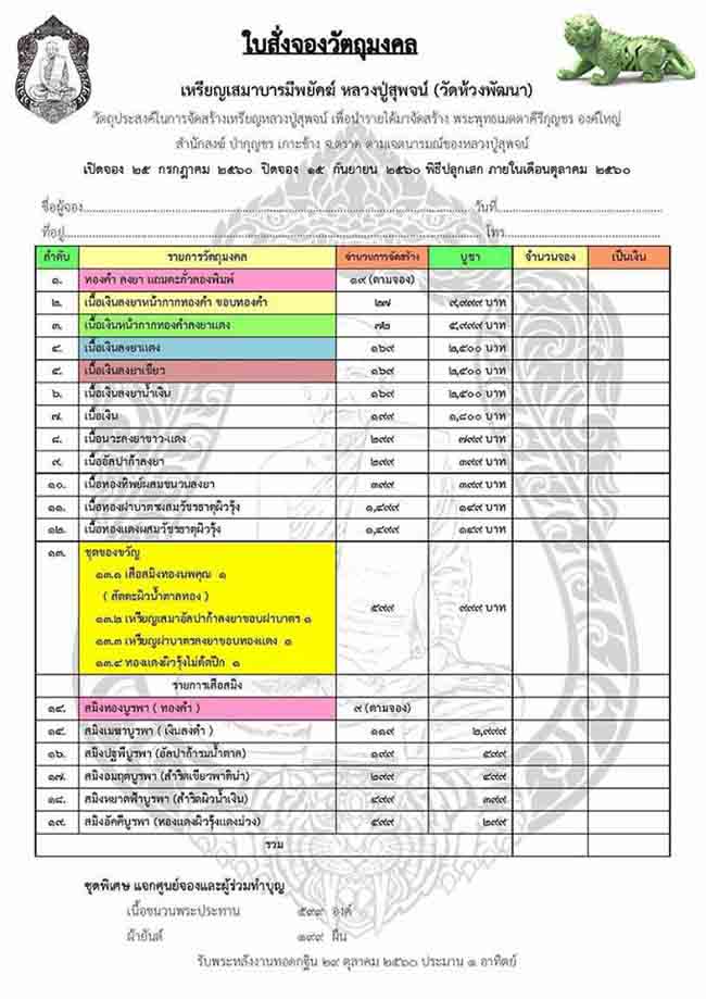 รายการ 13. ชุดของขวัญ (รับวัตถุมงคล 4 รายการ) ราคาจอง 999.-บาท มียอด = 3