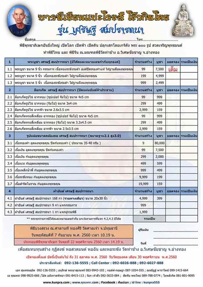 กำหนดรับพระตั้งแต่วันที่ 30 พ.ย.2560 ค่ะ