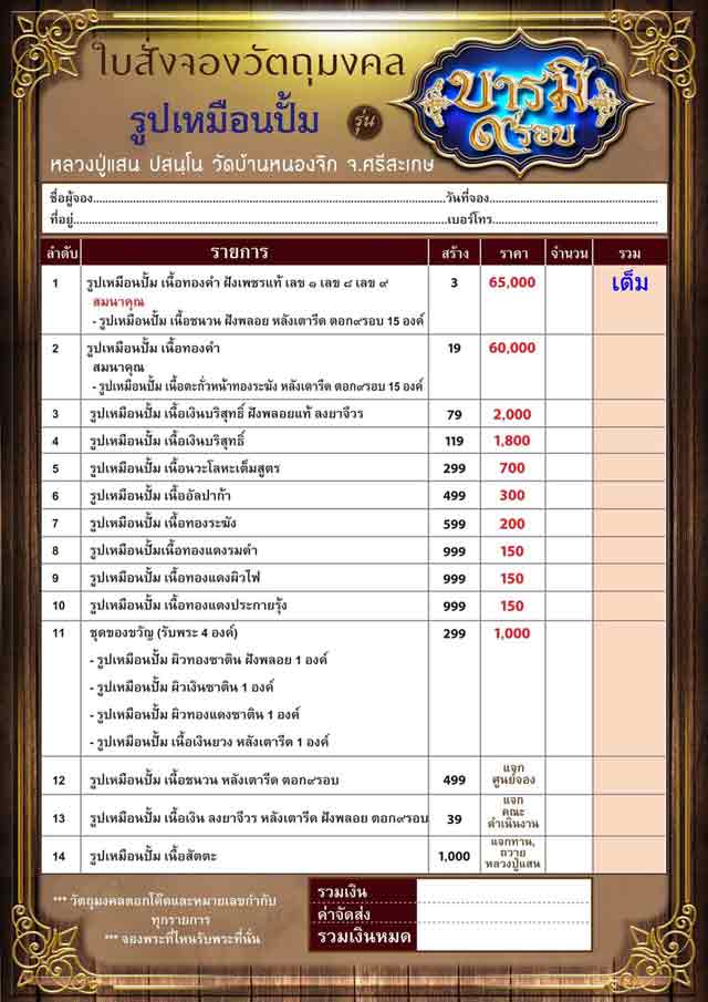 5.นวะโลหะเต็มสูตร มี 1 องค์ๆละ 700 บาท