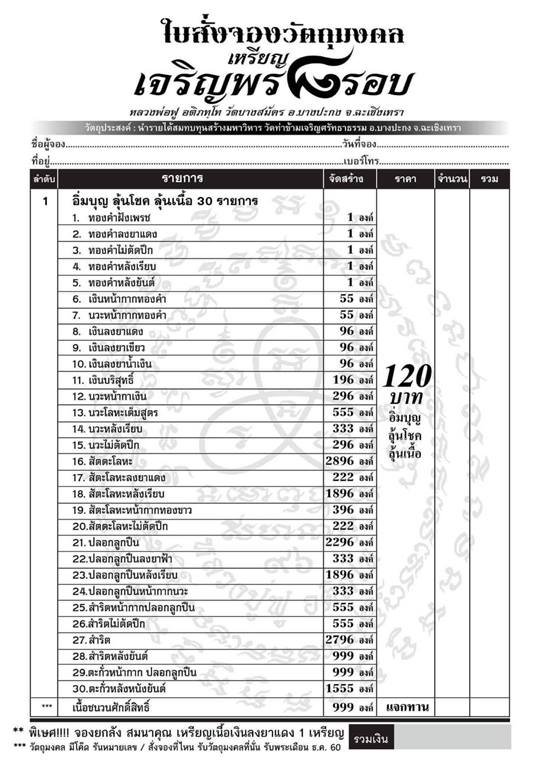 รายการ.อิ่มบุญ ลุ้นโชค ลุ้นเนื้อ 30 รายการ ราคาจอง 120.-บาท มียอด = 200