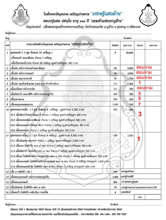 วัตถุมงคลตอกโค๊ดและหมายเลขทุกรายการ